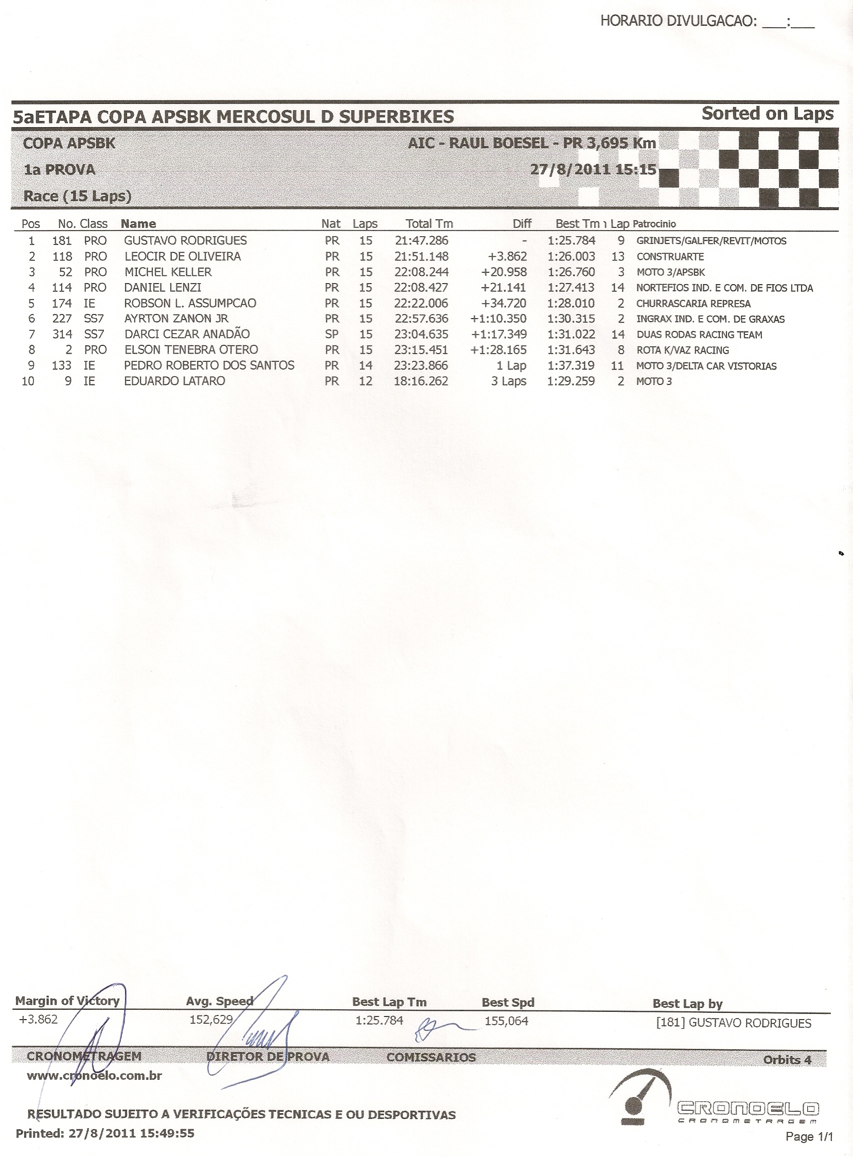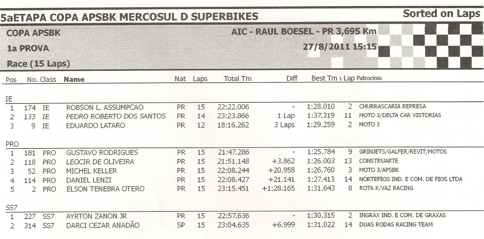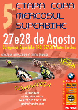 5ª. Etapa da Copa APSBK Mercosul de Motovelocidade 27 e 28 de Agosto - Curitiba - Pr |
