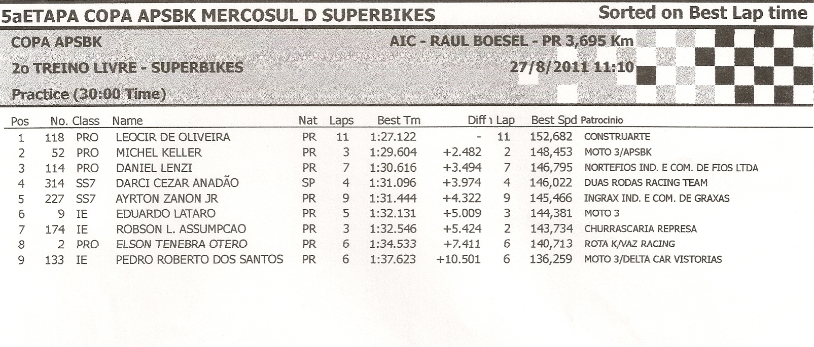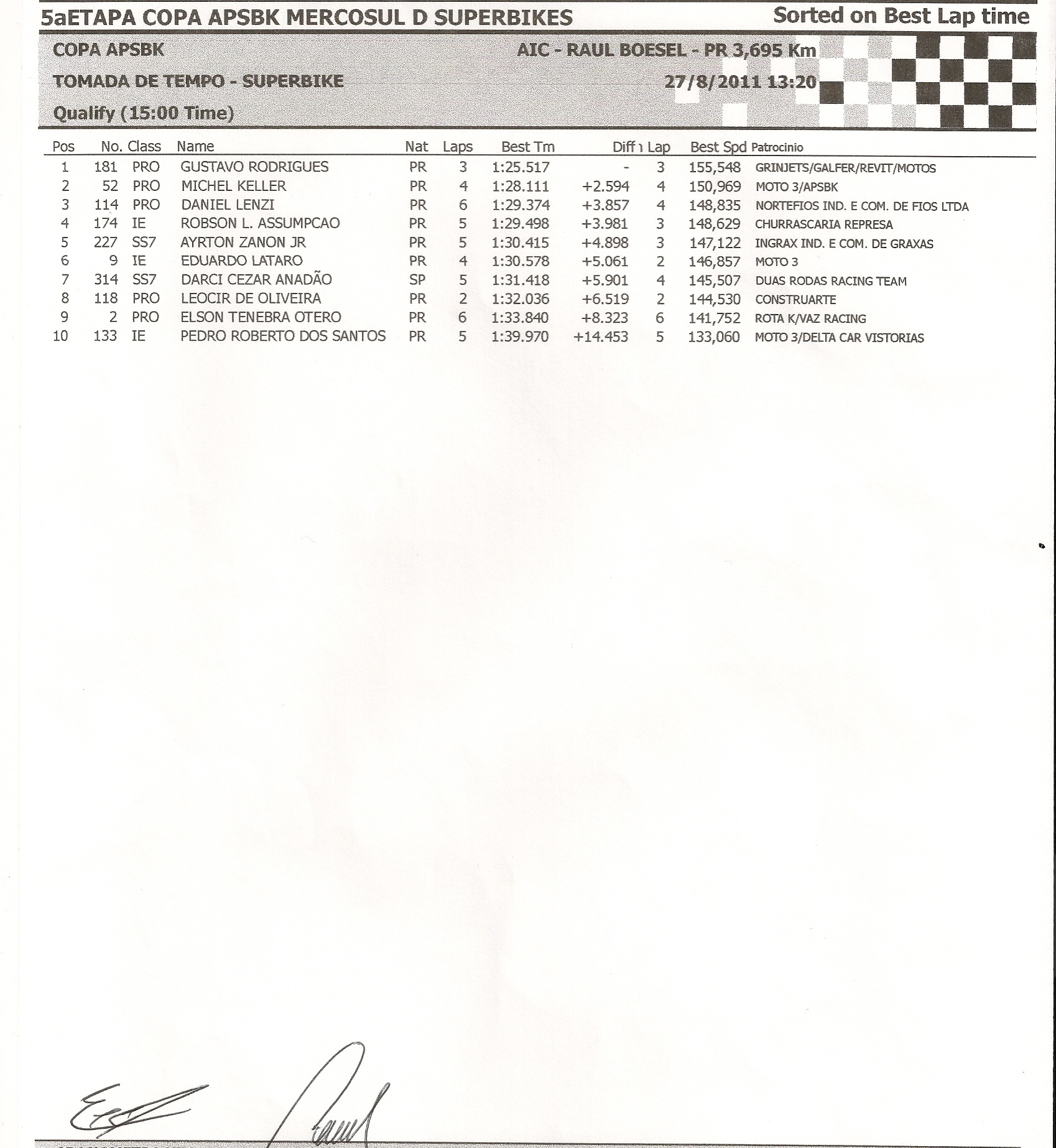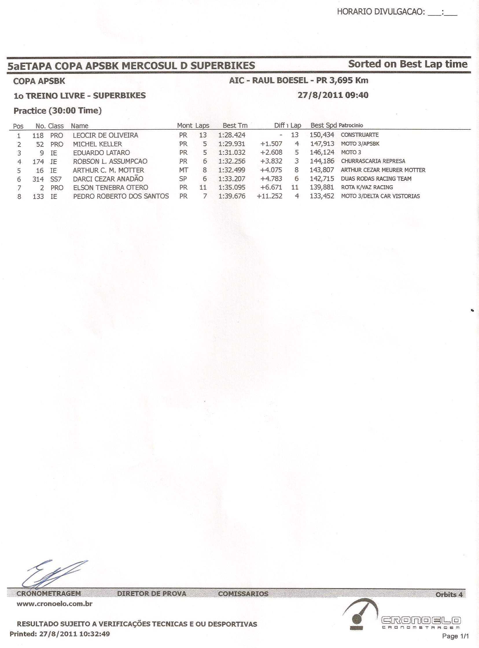 COPA MERCOSUL de Superbikes 2011 5a. Etapa 27 e 28 Agosto - Autodromo Internacional - Curitiba-PR |